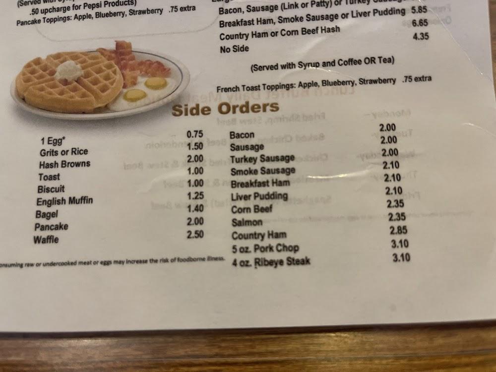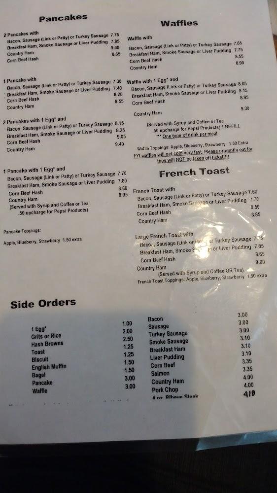 Don't forget the desserts! They add a sweet touch to the experience, ranging from homemade cakes to pies. Whether visiting for breakfast or lunch, the menu reflects the essence of traditional Southern dining and community connection.